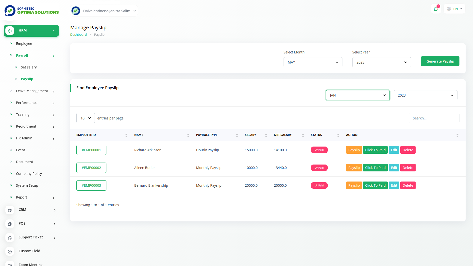 Sophistec Optima Solutions' payroll management feature simplifies the payroll process, allowing you to generate monthly payslips, make bulk payments, and provide detailed salary breakdowns with ease.